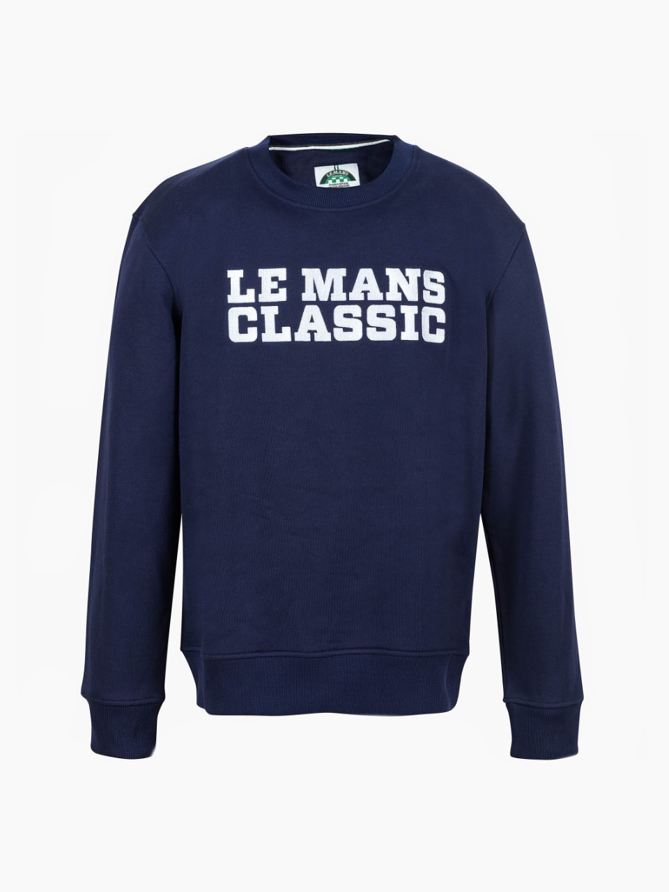 Men’s navy blue round-neck sweatshirt with Le Mans Classic logo.